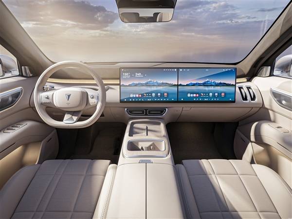 內部設計顯然從理想身上取到了經,采用類似解決方案,提供前排雙15.6英寸聯屏+43英寸AR-HUD抬頭顯示,并配備HarmonySpace 5鴻蒙座艙