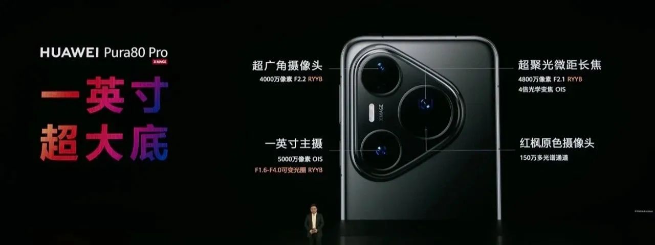 華為 Pura 80 Pro 的后置攝像頭同樣是 4 個,其中 5000 萬像素 1 英寸攝像頭+ 4800 萬像素超聚光微距長焦攝像頭+4000 萬像素超廣角攝像頭和 150 萬多光譜通道紅楓原色攝像頭,并支持自動對焦,讓拍攝效果更加出色;