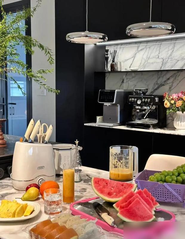 最妙的是燈光,沒掛吊燈也沒堆射燈,頂部藏了極簡(jiǎn)燈帶,晚上開起來像給空間裹了層柔光濾鏡,回家往沙發(fā)上一靠,一天的疲憊都散了。