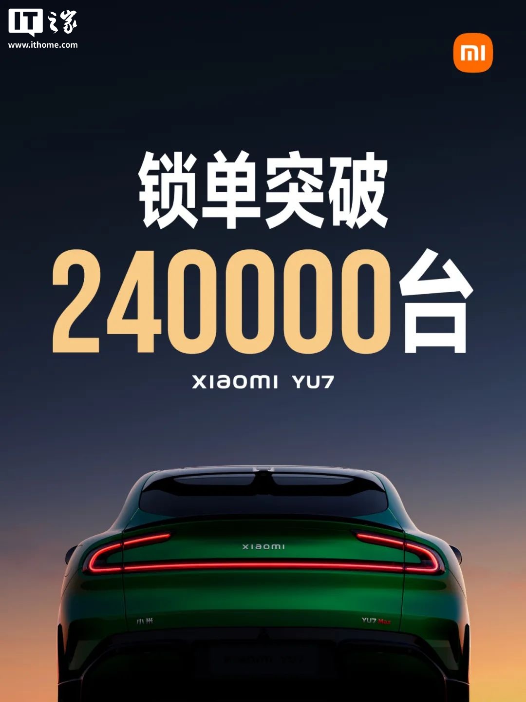 小米汽車官宣,開售 18 小時,小米 YU7 鎖單量已突破 24 萬臺。截至IT之家發文,小米汽車暫未公布 YU7 的 24 小時戰報。