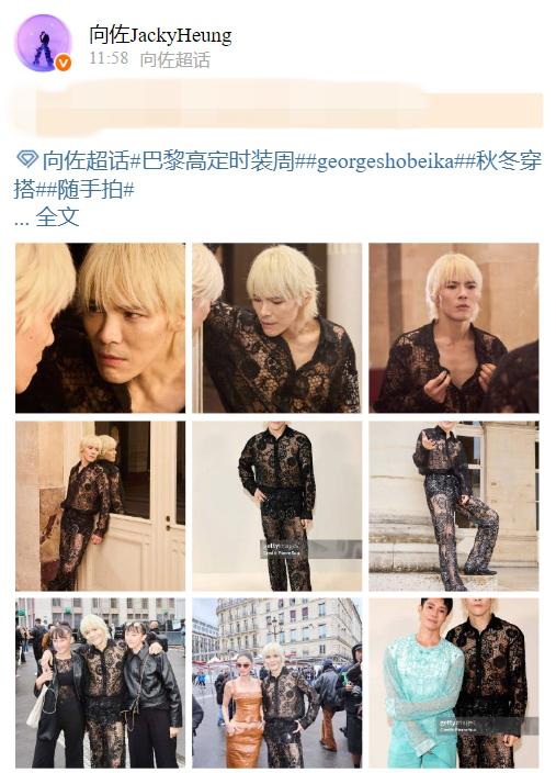 在7月8日,向佐在自己的社交平臺上曬出了幾張新造型的照片,這次向佐現身巴黎時裝周,也是換了新造型,染了一頭金發十分的耀眼,還穿著黑色蕾絲透視裝搭配黑色皮鞋,整個人看起來時尚感很強,但卻總說不出來哪里不對勁的感覺。
