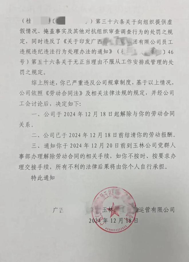 2024年7月,玉林公司取消了小林當月的月度績效工資。同年11月起,公司多次通知小林補簽《談話記錄》和《談話錄音音頻》,但小林都拒絕簽字。后公司以嚴重違反公司規章制度為由,于同年12月18日向小林發出關于解除勞動合同關系的通知,并于當日解除勞動合同。
