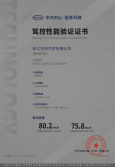 經(jīng)過路特斯專家的多輪調(diào)校,為吉利銀河A7帶來更穩(wěn)定的底盤操控、更好的動態(tài)響應(yīng)能力,憑借80.2公里/小時的麋鹿測試成績,獲得了《中汽中心駕控性能驗證證書》。
