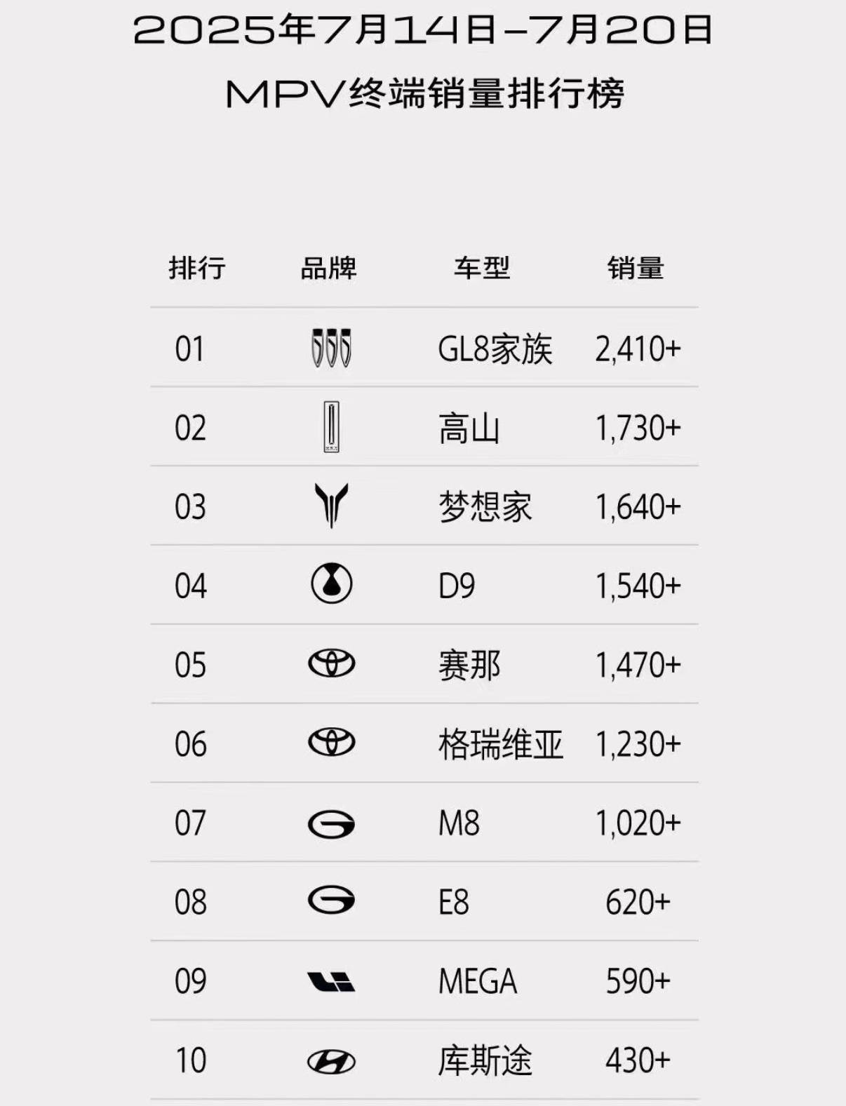 而旗艦SUV爆出的諜照,除了“探路”之外,也會和藍山一起,形成魏牌SUV總體的聲勢。很神奇的一點還在于,7月22日是個周二,也是銷量周榜的公布時間。而這一周在MPV排行榜上,的銷量居然力壓群雄,僅次于GL8排名第二。