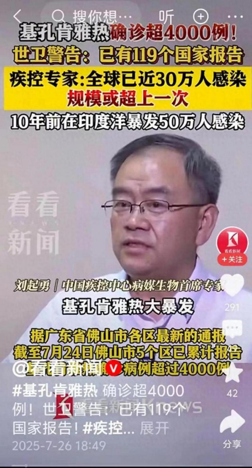 當(dāng)廣東佛山的基孔肯雅熱確診病例突破4000例的消息傳來,當(dāng)順德區(qū)3627名患者正承受著關(guān)節(jié)如被碾壓般的劇痛,一場沒有硝煙的"無形戰(zhàn)爭"已在全球悄然打響。這個源自坦桑尼亞斯瓦希里語的疾病名稱,意為"彎曲與搖擺",如今正讓全球近30萬人陷入身體扭曲的痛苦,其蔓延之勢甚至可能超過10年前印度洋地區(qū)那場導(dǎo)致50萬人感染的浩劫。