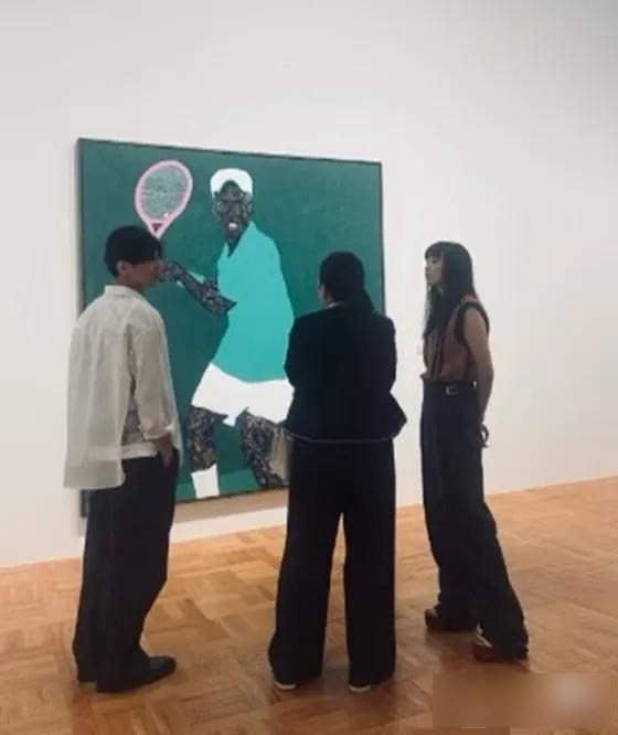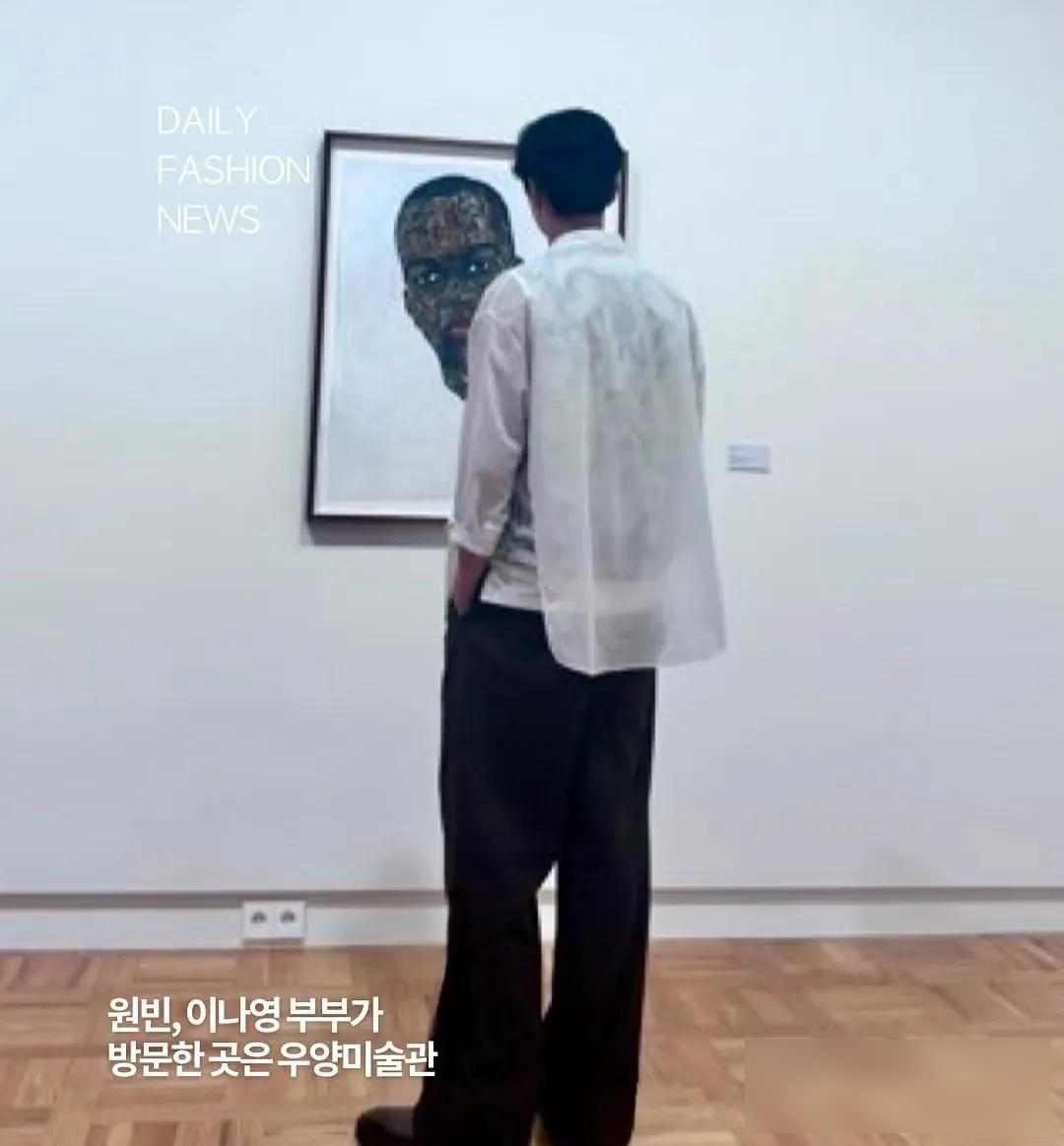 夫妻倆在美術館一幅畫前和朋友聊天,看起來聊得挺認真。元斌雙手插在褲兜,李奈映拿著手機拍照,雖然穿得普通但個子高,一眼就能認出來。之前元斌最后一次露面是參加演員金賽綸的葬禮,之后再沒拍過新作品,這些年基本沒在公開場合和妻子一起出現過。