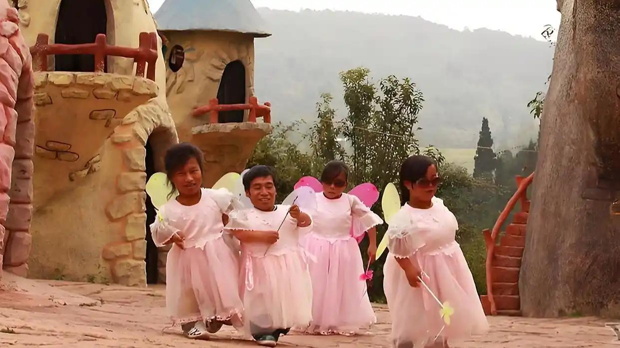 這不是迪士尼,而是昆明“世界蝴蝶生態園”里的“小人國”。在2009年陳明鏡建了這個主題公園,初衷很簡單就是為了給一些難就業的袖珍人一個飯碗。