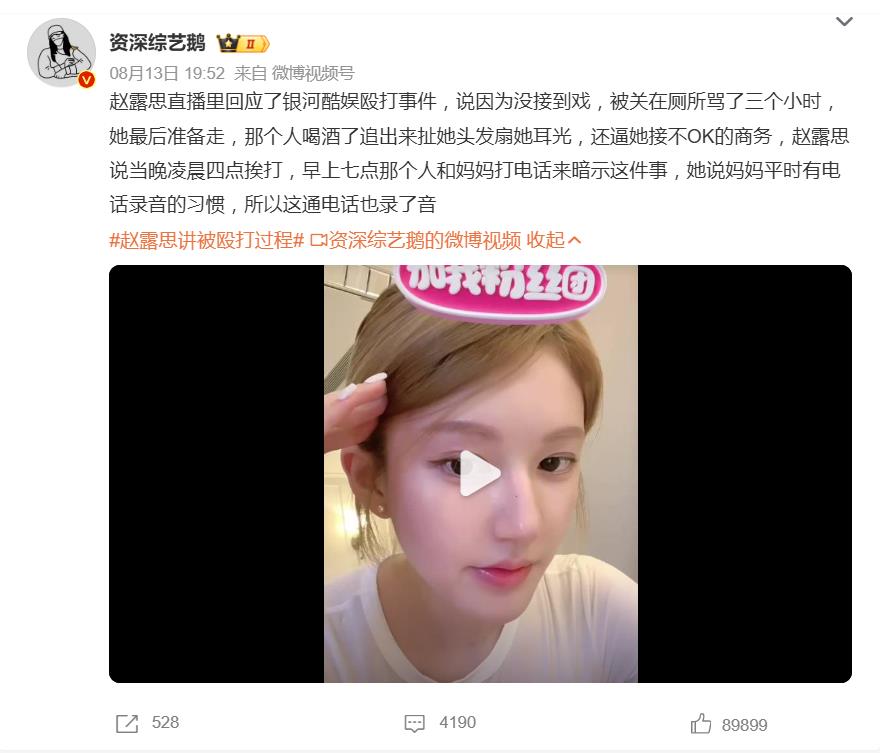 不至于是毆打,但確實被扯頭發、扇了耳光。”趙露思在直播中詳細回應2019年遭銀河酷娛工作人員霸凌事件,一席話直接引爆熱搜。