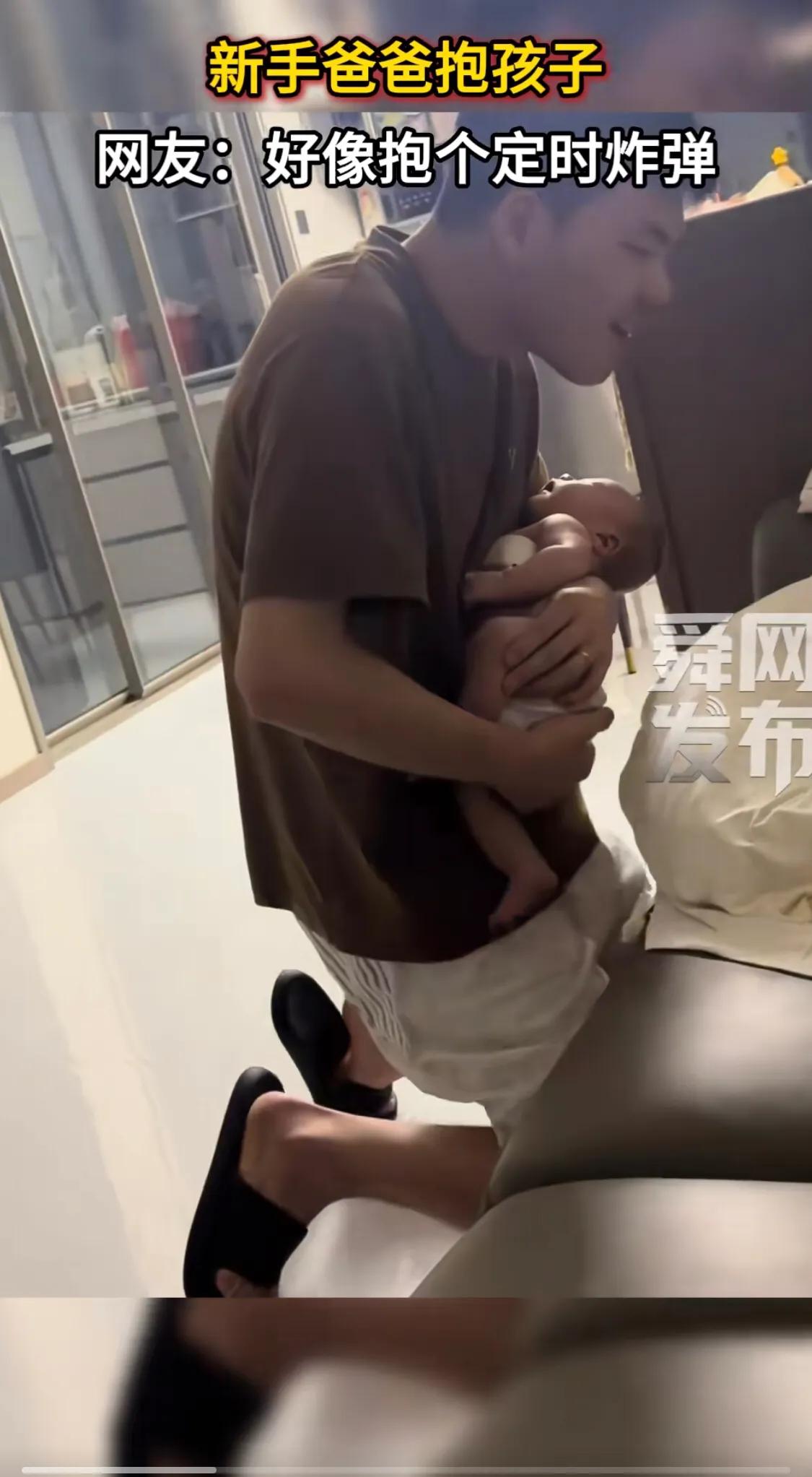 最近,抖音上一段“新手爸爸第一次抱娃”的視頻火了,畫面里爸爸笨手笨腳、緊張到滿頭大汗的樣子,讓無數網友笑到不行。視頻配文問:“難道全國的新手爸爸第一次抱娃時都是這樣的嗎?”答案似乎呼之欲出。