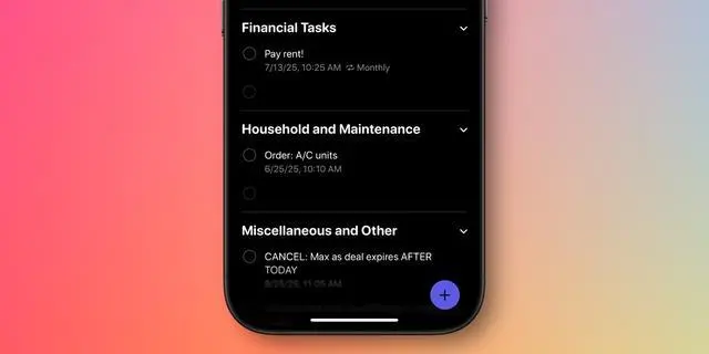8 月 16 日消息,科技媒體 9to5Mac 昨日(8 月 15 日)發布博文,報道稱在 iOS 26 提醒事項(Reminders)應用中,蘋果原生支持自動分類功能,可將任務列表智能分組到如“工作”、“家庭”、“健康”等多個板塊。