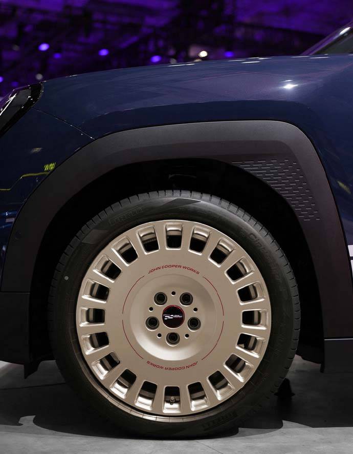 基于MINI ACEMAN,MINI打造了獨(dú)具特色的“盛裝舞步”限定套裝。展臺(tái)上這款新車最吸睛之處在于換裝了一套金色的拉力風(fēng)輪轂,這種由密輻條與中間密封設(shè)計(jì)組成的車輪,被拉力愛(ài)好者親切地稱為“大餅輪轂”。除了“盛裝舞步”限定套裝外,MINI展臺(tái)還將展示另一款神秘的拉力風(fēng)車型,這款車致敬了1965年在蒙特卡洛拉力賽奪冠的經(jīng)典Mini,彰顯了MINI輝煌的賽車歷史與傳奇,讓車迷們感受到品牌深厚的賽車文化底蘊(yùn)。