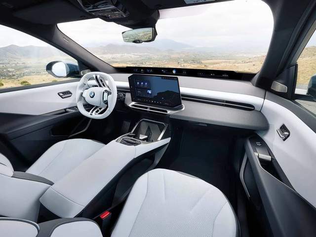 iX3的海外實車圖不難發現,全新寶馬iX3的外觀做了全新的設計。首先來看前臉部分,最引人注目的是,家族化大雙腎格柵調整成了兩組小嘴格柵,而前燈帶的設計,形如展開的雙翼,內含箭頭狀光源,點亮后很吸睛。下方的主動閉合式進氣格柵,未來感很強,其型面展現出了三維立體感。而機艙蓋的設計,更具匠心,兩邊帶圓潤的下滑型面,中間的凹槽能起到導流的作用,整個前臉的造型,更像一個機甲戰士。