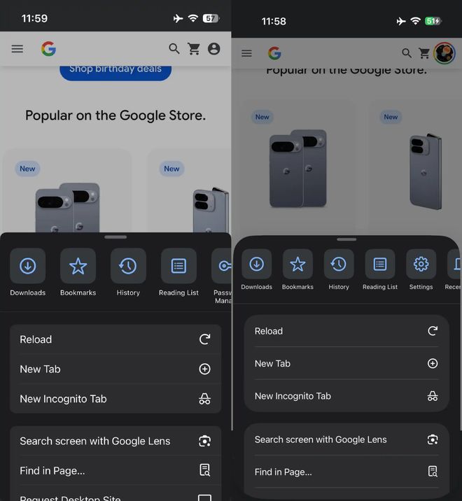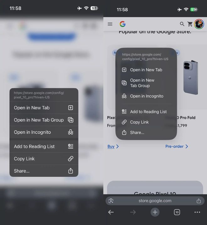 與安卓版相比,iOS 版本的界面和交互方式存在明顯差異(例如 Chrome 在 2023 年 10 月新增底部地址欄,而安卓版則在 2025 年 7 月才引入),并且擁有獨特的標(biāo)簽頁網(wǎng)格視圖和底部彈出菜單。