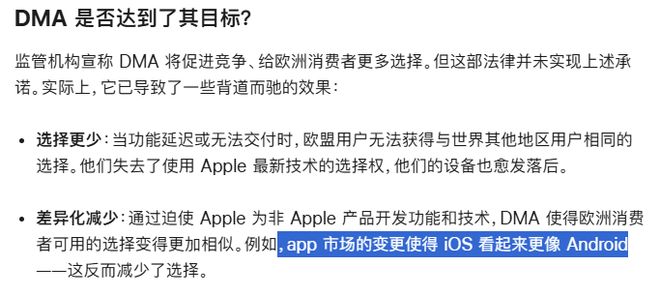 近日,蘋果公司在官網發布聲明,從多個方面批評了歐盟的《數字市場法》,并稱該法正在迫使 iOS 看起來“更像Android”。