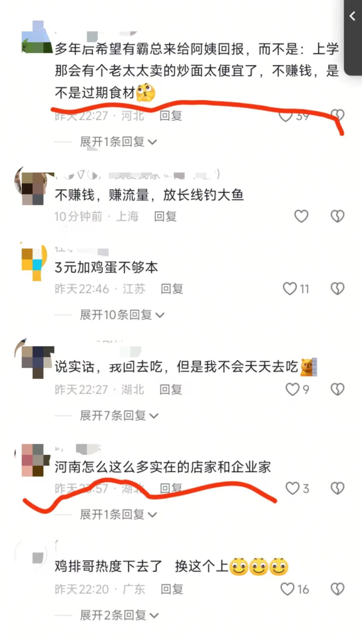 視頻在社交平臺發酵后,相關話題收獲數萬點贊。網友們紛紛留言:“3塊錢能吃到帶雞蛋的炒面還送豆漿,這才是民生溫度”“質疑的人不懂,這是平凡人的善意”“河南果然多實在店家,這份堅守太動人”。有網友感慨,在物價飛漲的當下,這樣的平價小攤不僅解決了剛需,更傳遞了久違的溫暖,“希望這份善意能被溫柔以待”。