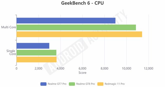 IT之家援引博文介紹,該媒體測試了努比亞紅魔 11 Pro、realme 真我 GT8 Pro 兩款手機,前者更能發揮驍龍芯片的極限性能,而后者由于在散熱策略上更為保守,因此犧牲了芯片性能。