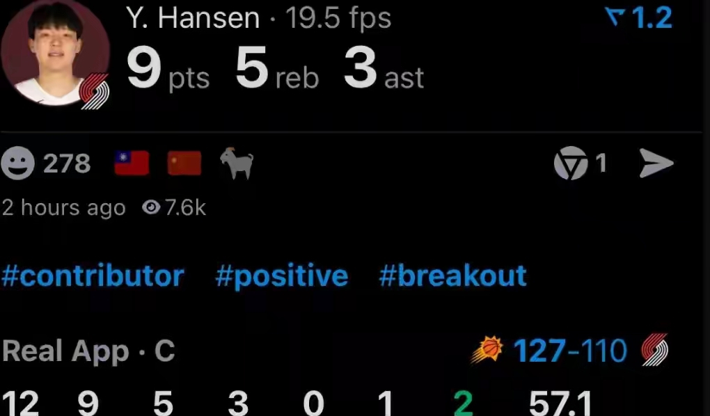 開拓者主場對陣太陽的比賽,對熊貓小將楊瀚森來說絕對是生涯高光夜!替補登場13分鐘,他9分5籃板3助攻1蓋帽全拿下,一記勢大力沉的戰斧劈扣直接引爆全場,這表現真是未來可期啊!