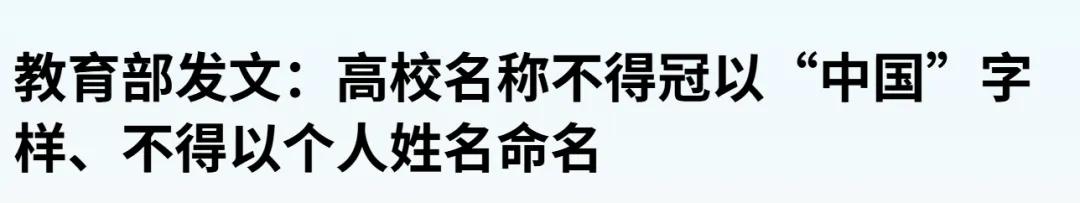 根據(jù)教育部規(guī)定,高校命名,原則上不得冠以“中華”“中國”“國家”“國際”等代表中國及世界的慣用字樣,也不得冠以“華北”“華東”“東北”“西南”等大區(qū)及大區(qū)變體字樣。