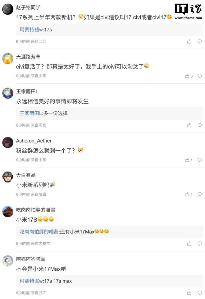 按照該博主此前的爆料習(xí)慣,這款新機(jī)預(yù)計(jì)為小米旗下產(chǎn)品。對(duì)于該機(jī)的具體名稱以及所屬系列,該博主暫未透露,評(píng)論區(qū)有網(wǎng)友猜測(cè)是小米 Civi 系列或小米 17s,還有網(wǎng)友猜測(cè)是小米新系列,具體名稱還有待官方公布。
